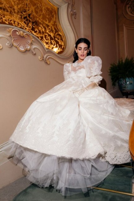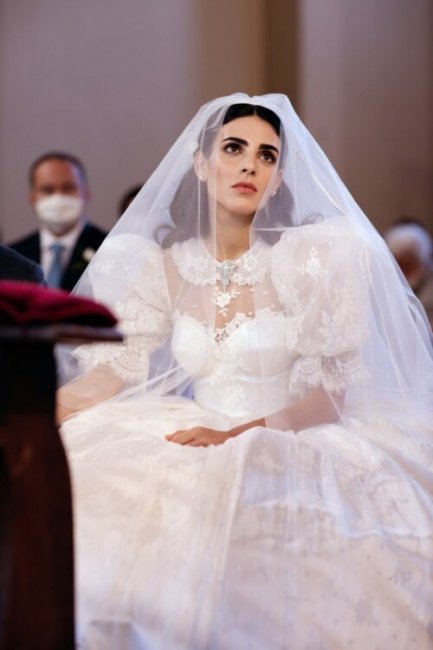 Свадьба Луиджи Берлускони и Федерики ФумагаллиВсе подробсти праздника держатся в тайне, однако сейчас стали известны детали свадебного образа невесты. Для церемонии бракосочетания Федерика Фумагалли выбрала пышное платье расшитое кружевом шантильи с объемными рукавами-фонариками Alessandra Rich. Ее подруга и дизайнер Алессандра Рич в течение четырех месяцев работала над дизайном подвенечного платья будущей миссис Берлускони. Невеста дополнила образ лаконичной белой фатой, шелковыми длинными перчатками и бриллиантовой брошью, которую мать жениха актриса Вероника Ларио подарила ей утром в день церемонии. В руках Федерика держала нежный букет из кремовых голландских роз.