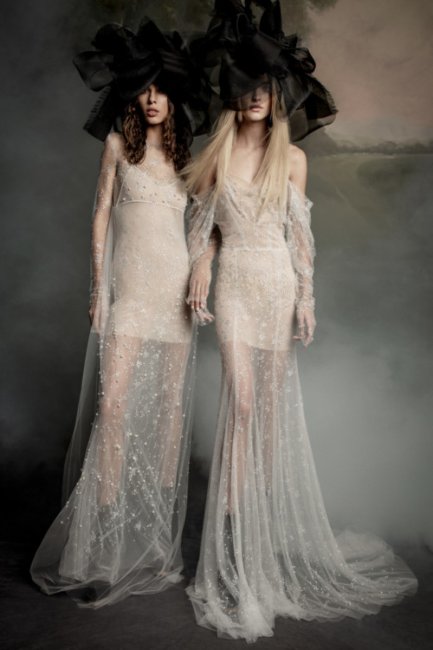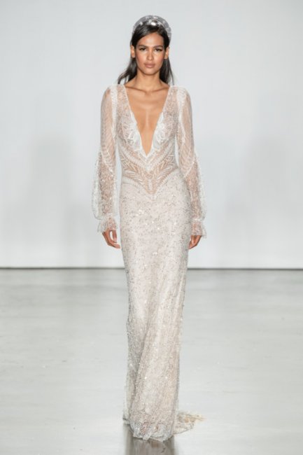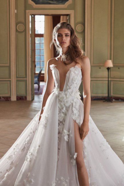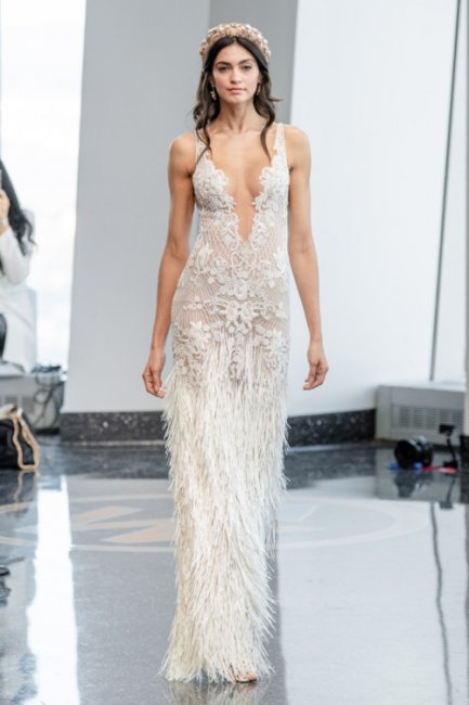 Хрупкость женской фигуры, изящные ключицы и соблазнительная линия декольте никогда не оставляла никого равнодушным. Так и бренды в новом сезоне с помощью глубоких V-образных вырезов проявляют свою любовь к женщинам. В коллекции Galia Lahav появились чувственные свадебные образы, Inbal Dror и Berta показали полупрозрачные, щедро расшитые образы со смелыми вырезами, а Marchesa уравновесили эффектный вырез с помощью романтичного платья с цветочной вышивкой.