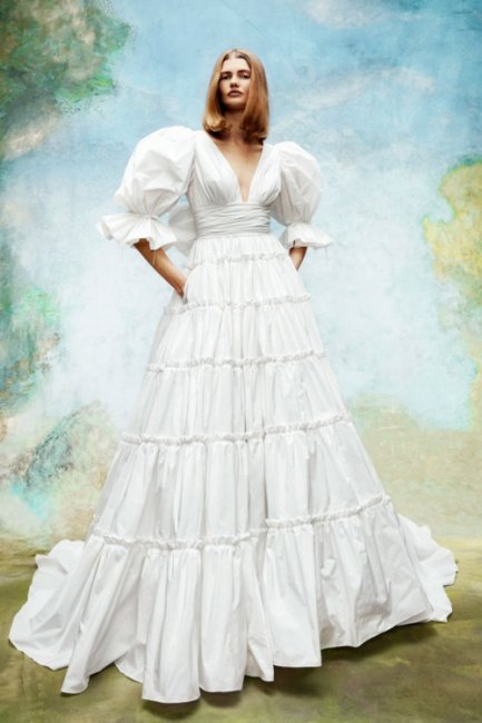 Остромодный тренд на объемные рукава добрался и до свадебной моды. Так, в коллекции Monique Lhuillier воздушные рукава и спущенная линия плеча стали главными элементами образов. Тем временем Danielle Frankel добавили к шелковому slip-dress полупрозрачные пышные рукава, а в коллекции Total White они стали главной "изюминкой" лаконичного свадебного платья. Даже в авангардной коллекции Vera Wang нашлось место чувственным и романтичным объемным деталям.