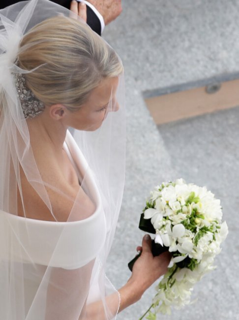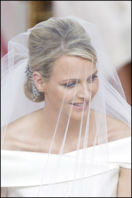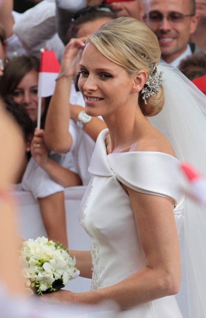 Свадьба князя Монако Альбера II и княгини ШарленВолосы Шарлен были зачесаны в тугой шиньон. «Я не ношу тиару», - сказала невеста. «Вместо этого принцесса Каролина одолжила мне красивые заколки с бриллиантами, которые принадлежали ее бабушке. У меня была также тиара, сделанная Van Cleef & Arpels, но я решила выставить ее в Океанографическом музее, и я надеть на свое первое официальное мероприятие» - поделилась Шарлен. Голову княгини Монако украшала нежная фата без декора, которая добавила образу невинности и аристократичности. Эскиз букета невесты был также выполнен Джорджо Армани в стиле платья невесты. За реализацию букета, состоящего из белых орхидей и фрезий, отвечали садовники дворца. Больше свадебных снимков смотрите в нашей галерее.