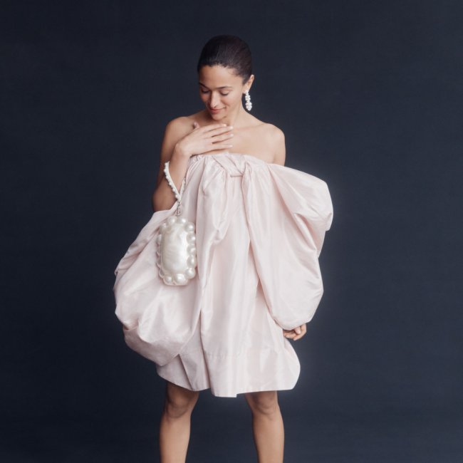 Simona Rocha х MytheresaПодвергая сомнению все представления о женственности, коллекция состоит из платьев любой длины - от мини до макси, и включает в себя объемные силуэты с воздушными рукавами, абстрактные формы, инкрустацию бусинами и нежной вышивкой в оттенках розового, пастельно-желтого и белого цветов. В капсулы вошли пять платьев из нежных тканей, таких как шелковая тафта, тюль и кружевная органза. Остальную часть коллекции занимают аксессуары, инкрустированные искусственным жемчугом: царственная повязка на голову, пара эффектных серег и романтичная заколка.