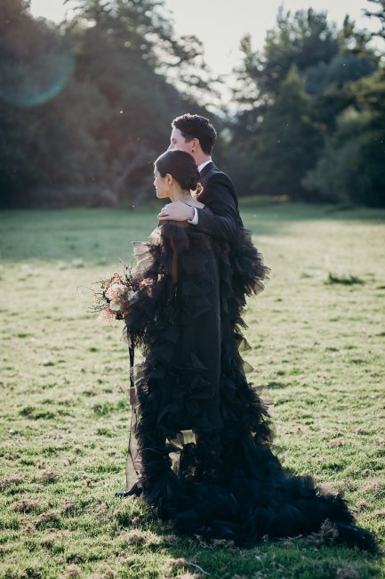 Свадьба Эль Макферсон-ЮнЗнаменитости также в качестве свадебного образа выбирают черный цвет. Так, Эль Макферсон-Юн, эксперт по истории искусства, надела черное платье Emilia Wickstead с потрясающим гигантским белым бантом на спине – такой образ девушка выбрала для небольшого пост-свадебного вечера. Кроме того, всегда стильная Сара Джессика Паркер доказала, насколько поразительно красивым может быть свадебное платье в черном оттенке – невеста выбрала пышный наряд с многоярусной юбкой Morgane Le Fay для того, чтобы произнести заветное «Да» своему жениху Мэтью Бродерику еще в 1997-м году. Ниже представлены снимки знаменитостей, которые пошли против традиций и надели черные свадебные платья.
