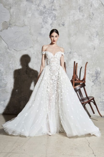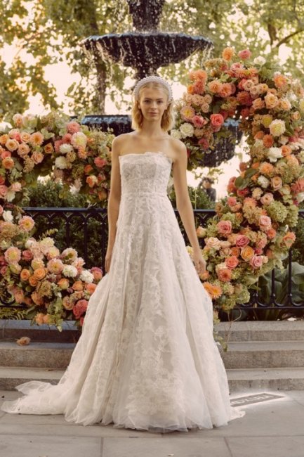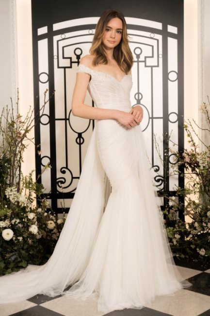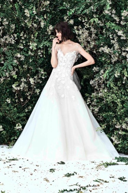 Свадебное платье Амаль Клуни от Oscar de la Renta, выставка в музее изящных искусств а Хьюстоне, 2017 годСпустя 6 лет после свадьбы Амаль Клуни ее подвенечный наряд остается одним из самых востребованных среди современных невест. Классический крой, открытая линия плеч и нежное кружево использовали многие бренды в своих свадебных коллекциях. Вот некоторые из них.