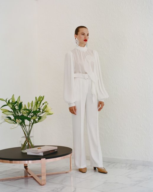 Nadya Dzyak BridalNadya Dzyak Bridal сохраняет ДНК бренда: в коллекцию вошли прозрачные платья из органзы с плиссированными воланами, блузы и платья длины миди с ажурными лазерными перфорациями в виде вставок, брючные костюмы и топы, дополненные флористическим декором ручной работы. В палитре линейки сочетаются нежные оттенки слоновой кости, сливочного и традиционного белого цветов, а также различные фактуры – такие, как прозрачная органза и плотный жаккард. Все изделия новой коллекции отшиваются вручную в студии бренда.