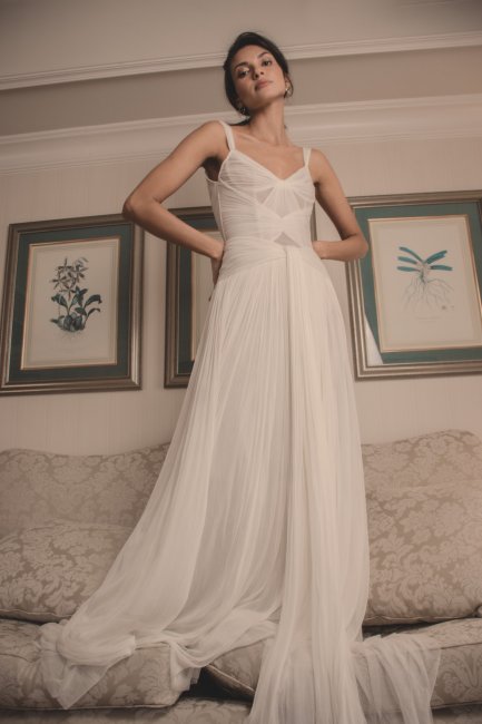 Свадебные платья с драпировками - элегантный тренд этой осени, напоминающий о творчестве легендарного дизайнера Мадам Гре в 1930-х годах. В этом же сезоне самое красивое подвенечное плате со сложносочиненными драпировками можно встретить в коллекции Dana Harel. Изысканные переплетения шелкового тюля, задрапированного вручную, дает невесте возможность почувствовать себя одновременно сексуальной, элегантной и женственной.