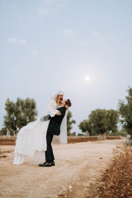Что является основой для свадьбы? Конечно, любовь. И, ради всего святого, почти во всех случаях это так и есть. Однако есть молодожены, которые любят друг друга больше, чем другие, или, по крайней мере, так кажется. Одна из таких пар — Сильвия Торасса и Джакомо Миссони. И пусть не существует прибора, измеряющего силу чувств, их можно назвать по-настоящему родственными душами. Эти двое знают друг друга с детства, так как их семьи дружат, но настоящая искра между ними пробежала лишь спустя года, когда они повзрослели. Предложение руки и сердца было сделано в Апулии — там впоследствии состоялась и сама свадьба. Торжество несколько раз откладывали, но 18 сентября 2021 года паре наконец удалось вступить в официальный союз. Свадьба Сильвия Торасса и Джакомо Миссони Сильвия и Джакомо хотели устроить настоящий праздник — это точно получилось. Вместо классического ужина-репетиции ( традиция, которая, как и Хеллоуин, пришла в Италию из Штатов и представляет собой ужин, организованный накануне свадьбы. — Прим. ред. ) пара организовала гонки на картинге с настоящим награждением победителей и черно-белыми гоночными костюмами. Тем временем, церемония венчания, организованная ивент-агентством Ottone Weddings (как и весь праздник), прошла в святилище Мадонны д’Иберния в Чистернино. Любой, кто был ранее в долине Итрии, знает о красоте этого места. Свадьба Сильвия Торасса и Джакомо Миссони Однако эта локация заиграла новыми красками с появлением невесты. Выход Сильвии сопровождала радуга и две тысячи белоснежных бумажных бабочек, которые гости подбрасывали вверх вместо риса. Еще один приятный сюрприз — неожиданное выступление певца Аль Бано. У выхода из церкви он исполнил захватывающая интерпретация легендарной песни Felicità и Ave Maria Шарля Франсуа Гуно. Но это было еще не все. Несмотря на масштабность мероприятия, на празднике царила атмосфера семейного теплого ужина. Так, например, почтив традицию создания свадебных венков, Сильвия сплела украшение на голову из стручков перца чили. Святилище Мадонны д’Иберния в Чистернино Вечерняя часть мероприятия прошла в легендарной массерии Torre Coccaro в Фазано. Вечеринка началась с шумных танцев на площади с множеством акробатов, ходулистов и шатров с типичными гастрономическими деликатесами Апулии: свежей моцареллой, орекьетте и другими итальянскими яствами. Ужин состоял всего из двух блюд, а атмосферу всеобщего веселья подогревала группа Boys 4 Road. Благодаря разноплановому репертуару — от классических произведений 1930-х годов до современных хитов в свинг- и рок-н-ролл-аранжировке — танцевали буквально все столы. Свадьба Сильвия Торасса и Джакомо Миссони Массерия Torre Coccaro в Фазано Свадьба Сильвия Торасса и Джакомо Миссони Важную роль в мизансцене, как и на церемонии венчания, сыграли любимые цветы невесты, которые были подвешены над длинными столами, подчеркивая загородный шарм свадьбы. Ароматические растения, типичные для апулийских огородов, дали название столам: лавр, тимьян, розмарин, перец чили, шалфей. Цель была достигнута - цветы окутали гостей типичными ароматами этой земли. Все было продумано до мелочей — за это спасибо команде Ottone Weddings, которая взяла на себя все вопросы по организации вечера. Свадьба Сильвия Торасса и Джакомо Миссони Свадьба Сильвия Торасса и Джакомо Миссони Вместо карточек с именами на с