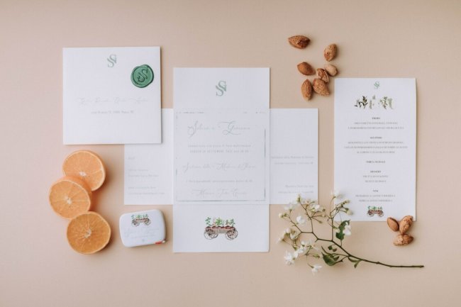 Вместо карточек с именами на столах были фигурки в виде трулло (традиционный в Апулии дом с конической крышей. — Прим. ред.), которые гости могли оставить на память о торжестве, а вместо бонбоньерок — традиционное апулийское керамическое украшение «пумо» в виде бутона цветка. На этом подарки не закончились. Отец Сильвии, Роберто Торасса, вручил молодоженам историческую коробку конфет Mental с логотипом и датой свадьбы. Mental Fassi — кондитерская компания принадлежащая семье Торасса, которая существует много лет.
