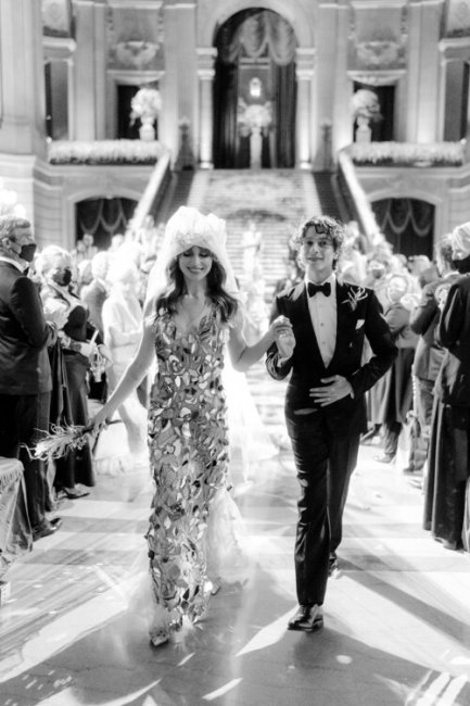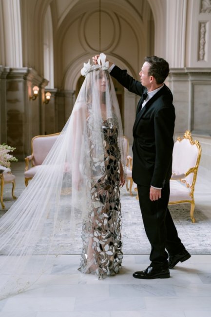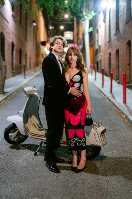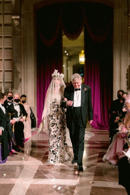 Свадьба Айви Гетти и Тобиаса ЭнгеляСвадьба началась с вечеринки British Invasion Mod Party во Дворце изящных искусств в Сан-Франциско в четверг вечером. Вдохновением для гуляний послужил научно-фантастический фильм 1968 года режиссера Жан-Клода Фореста «Барбарелла». Организаторам мероприятия потребовалось семь дней, чтобы переосмыслить то, что обычно выглядит как авиационный ангар внутри, в полноценный ночной клуб с блестящими серебряными стенами. «Накануне я знала, что стены были серебряными, и больше ничего не знала», — признается Гетти.