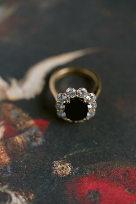 Свадебный образ Айви ГеттиТоби сделал предложение свой возлюбленной и подарил ей обручальное кольцо из желтого золота с сапфиром, напоминающее знаменитое украшение принцессы Дианы. Вокруг центрального камня красовались бриллианты из ожерелья, которое бабушка Айви подарила ей в подростковом возрасте. «Это самое уникальное украшение, и оно так много значит для меня. Я невольно улыбаюсь каждый раз, когда смотрю на руку и вижу его!» — говорит Гетти.