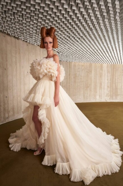 Внимание к деталям и мастерство модных Домов видно невооруженным глазом в кутюрных коллекциях брендов. В этот раз мы сфокусировались на самых красивых свадебных платьях – от объемных платьев-тортов Giambattista Valli до космических нарядов Iris Van Herpen.