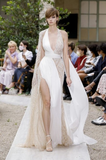 Christian Dior CoutureВ других коллекциях источником вдохновения послужили надежда и возрождение. Коллекция Chanel Couture, созданная под влиянием импрессионистов, была наполнена обилием цветочных мотивов и романтической вышивкой, похожей на мазки краски великих художников. Zuhair Murad передали романтическое настроение с помощью сверкающей вышивки на платьях-принцесс в оттенках серо-голубых, приглушенно золотых и зеленых оттенках. Это был первый показ дизайнера с тех пор, как его историческое ателье в Бейруте было разрушено.