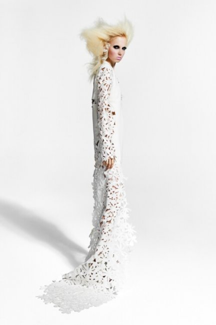 Chanel CoutureИ пусть коллекция Вирджила Абло не была представлена на Неделе высокой моды, однако он создал невероятное свадебное платье для итальянской модели Джорджии Габриэле, которая вышла замуж в эти выходные на озере Комо. Дизайнер разработал для Джорджии кружевное свадебном платье с открытой спиной и длинным шлейфом. Линию декольте и тонкую талию модели подчеркивал корсет, которые просвечивался через нежное белое кружево. Не обошлось и без особенных деталей на платье невесты - один из рукавов был украшен красной вышитой надписью "Здесь рука Андреа", тем самым подчеркнув, откуда "идет" рука ее мужа.