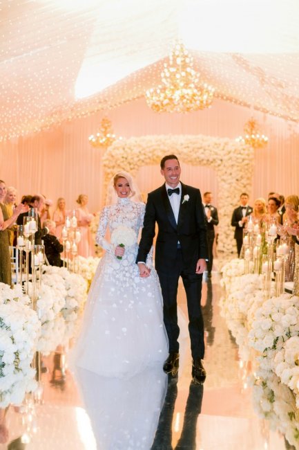 Свадьба Жасмин Тукс и Хуана Дэвида БоррероПэрис Хилтон и Картер Реум11 ноября 2021 года Пэрис Хилтон вышла замуж за бизнесмена Картера Реума, с которым встречалась около двух лет. Само торжество продолжалось три дня. Официальная церемония бракосочетания прошла в бывшем поместье Bel Air покойного дедушки невесты Бэррона Хилтона. В качестве свадебного образа невеста выбрала кружевное платье Oscar de la Renta с пышной юбкой и роскошной длинной вуалью с флористической вышивкой. После приема в поместье последовал карнавал на пирсе Санта-Моники, а на следующий день - вечеринка в стиле black tie. Помимо главного платья, в котором Пэрис произнесла торжественную клятву, у невесты было еще три других образа: изящное платье с открытыми плечами и пышной юбкой Galia Lahav, платье-кейп с бисером и камнями Pamella Roland и короткое коктейльное платье из тафты Oscar de la Renta. Среди гостей на свадьбе присутствовали многие знаменитости, среди которых Ким Кардяшьян, Эмма Робертс, Кайл Ричардс, Пола Абдул и Эшли Бенсон.