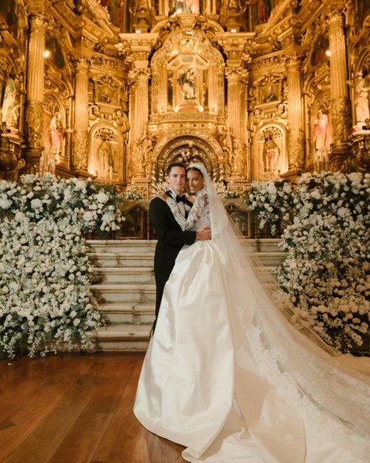 Свадьба Гвен Стефани и Блейка ШелтонаЖасмин Тукс и Хуан Давид БоррероВ сентябре американская топ-модель Жасмин Тукс вышла замуж за исполнительного директора Snapchat Хуана Дэвида Борреро. Свадьбу влюбленные отпраздновали в столице Эквадора, а церемония бракосочетания прошла в католической церкви в центре Кито. В этот день Жасмин блистала в роскошном платье Zuhair Murad с кружевным верхом, пышной юбкой и шлейфом длинной 4,5 метра. Свой образ невеста дополнила лаконичными украшениями: бриллиантовыми серьгами Ritani и обручальным кольцом. Обула модель белые атласные туфли, которые были сделаны на заказ брендом Sarah Flint. Хуан же надел двубортный смокинг Giorgio Armani. Подружки невесты были одеты в элегантные платья Amsale.