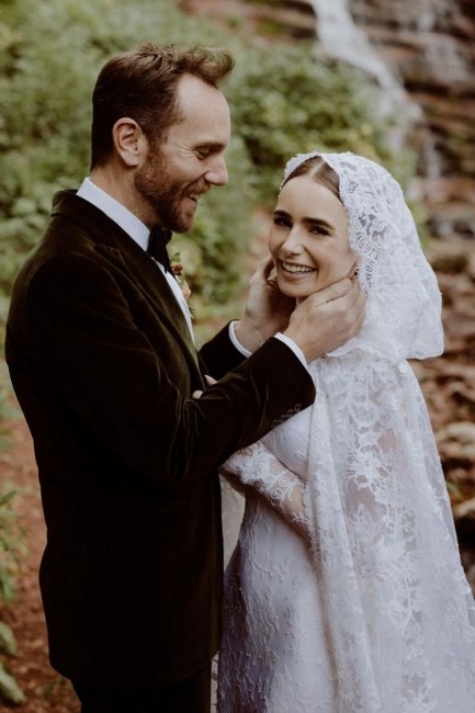 Свадьба Жасмин Тукс и Хуана Дэвида БоррероЛили Коллинз и Чарли МакдауэллАктриса Лили Коллинз, известная по сериалу "Эмили в Париже", гле она сыграла главную роль, 4 сентября вышла замуж за режиссера Чарли Макдауэлла. Возлюбленные провели камерную церемонию на живописных горячих источниках Дантон, расположенных в штате Колорадо. О свадьбе актрисы стало известно из ее Instagram-аккаунта, где она опубликовала романтические снимки с женихом. В этот день Лили надела свадебное платье Ralph Lauren классического силуэта. Вместо пышного образа невеста выбрала сочетание узкого силуэта и роскошной фактуры кружева. Платье с длинными рукавами красиво подчеркивал ее стройную фигуру и делал похожей на фарфоровую статуэтку. Особым элементом образа стала кружевная накидка с фатой-капюшоном.