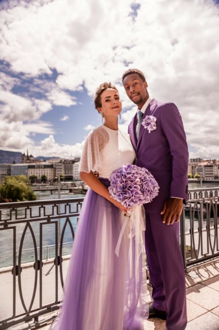 Свадьба Сильвии Торасса и Джакомо МиссониЭлина Свитолина и Гаэль Монфис16 июля первая ракетка Украины Элина Свитолина, занимающая сейчас шестую строчку в мировом рейтинге WTA, вышла замуж за возлюбленного Гаэля Монфиса, с которым состояла в отношениях уже несколько лет. Главная спортивная свадьба 2021 года прошла в Швейцарии: роспись в Неоне, а сама вечеринка в отеле Four Seasons. Над свадебным образом Элина работала вместе с дизайнером Вирджилом Абло, в результате чего получился небанальный элегантный образ. Главный наряд невесты состоял из белоснежного комбинезона с кружевной накидкой с надписью "Love always wins" и съемной лавандовой юбки из фатина. Завершающей деталью стали туфли Le Silla. Поскольку Гаэль подарил Элине помолвочное кольцо GRAFF, то и обручальные кольца молодожены выбрали соответствующего бренда.