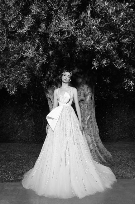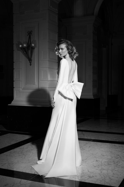 MarkarianТенденция на романтичный декор в виде бантов не обошла стороной и коллекцию ливанского дизайнера Зухаира Мурада, который славится своими "королевскими" подвенечными платьями. В этом сезоне весна-лето 2022 наряд с мерцающими элементами обнимает крупный белоснежный бант на талии. Примерив один раз это платье, не захочется снимать его никогда. Эффектней всего крупные банты смотрятся в паре со свадебными платьями лаконичного кроя, тогда все внимание приковано к этому изящному декору. Так, Amsale украсили атласное белое платье лишь одной акцентной деталью на спине, в то время как Halfpenny London поместили крупный бант в область декольте ( кстати, этот хитрый стилистический прием особенно подойдет для девушек с маленькой грудью).
