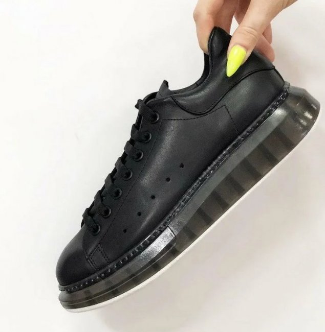 Обязательными в гардеробе станут кроссовки из сплошного черного, который станет обязательным для холодного сезона. При этом можно будет выбрать виды из кожи с узором сердца, тканевые варианты с вышитыми цветами для самых романтичных и молодых или модели с шипами и покрытием краской гипер-глэм, с застежкой сбоку, которая сделает образ более современным.