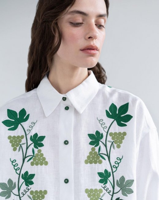 Сорочка "Карпати", FoberiniТакож серед символів здоров’я є зображення дубового листя. Дуб вважається чоловічим символом, як і хміль, що уособлює юнацьку силу й енергію, здатність увиватися за дівчатами.