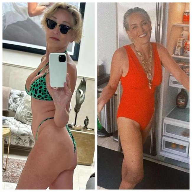 Однако часто перегибает с фильтрами. Недавно Шерон выложила фото в бикини, и тело актрисы в кадре выглядит так, будто она снова вернулась во времена съемок «Основного инстинкта». Правда фото в сети опровергают то желаемое, которое Стоун выдает за действительное. Да, для 65 у актрисы хорошая фигура, но есть ряд зон, которые выдают возрастные измения: руки, колени, живот.