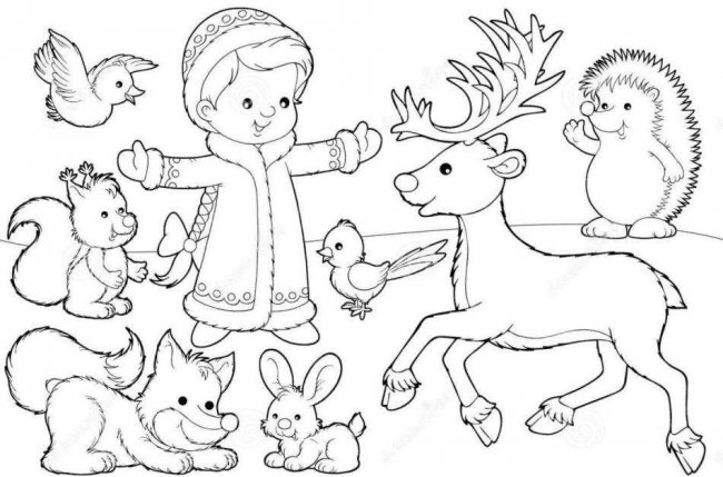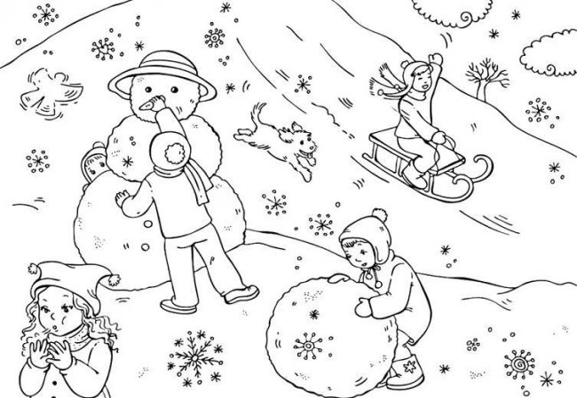 Рисунки о зиме с детворой и животными для начинающих и детей для срисовки: фото