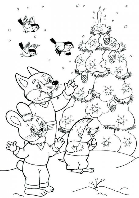 Зима – это «сказочная пора», а значит, даже животные в это время года радуются пышному снегу, ждут Нового года и веселятся. Можно нарисовать пейзаж с изображением любых «лесных жителей»: волк, лиса, белочка, медведь, ежик, заяц и другие.