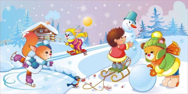 Для того, чтобы рисунок получился насыщенным, интересным и позитивным, изобразите несколько сюжетных линий сразу. Например, в лесу или на полянке, дети развлекаются зимними забавами вместе.