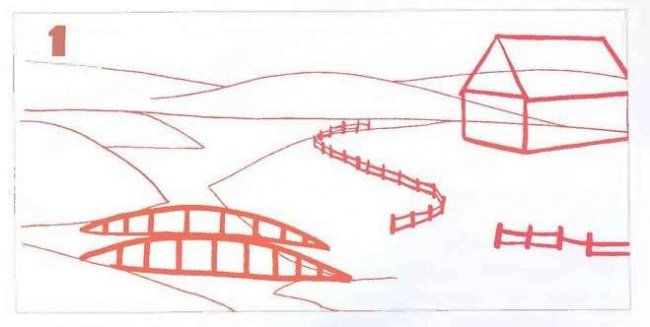 - Выберите перспективу, т.е. ориентировочное место расположение домика на листе бумаге.