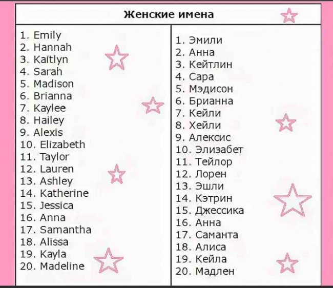 Существует и масса иностранных имен, которыми чаще всего называю девочек.