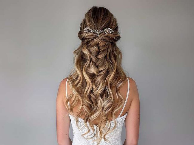 Французский шик — это про прическу, собранную будто «на скорую руку», но с точным знанием формы. Низкий пучок со слегка выбившимися прядями у лица делает образ утонченным и романтичным. «Такая прическа отлично сочетается с открытой спиной платья или кружевным верхом. Украшения — миниатюрные заколки, тонкий ободок или нежная фата в стиле минимализм», — говорит эксперт.