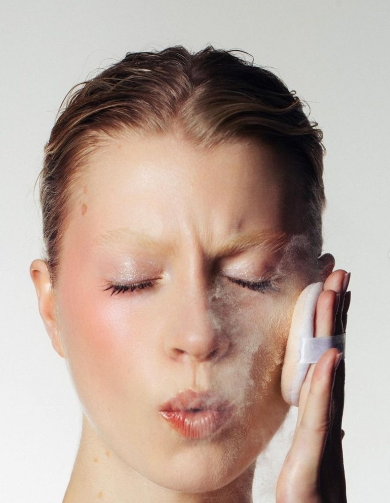 Перед макияжем кожу нужно тщательно очистить и увлажнить. Это ключевой момент: бейкинг работает с плотными текстурами, поэтому без подготовки он может подчеркнуть сухость и неровности. Сначала наносится уход, подойдет легкий крем или сыворотка. Важно дать ему полностью впитаться, чтобы кожа не была липкой или влажной. Иначе макияж может лечь неровно.
