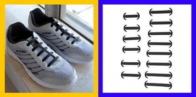 При этом главным аксессуаром сезона стали ленивые шнурки, которые не нужно завязывать. Это вот такое гениальное китайское изобретение — штуковины из силиконовой резины, которые вставляются вместо шнурков в дырки, и позволяют одевать ботинки или кроссовки, ничего не завязывая: