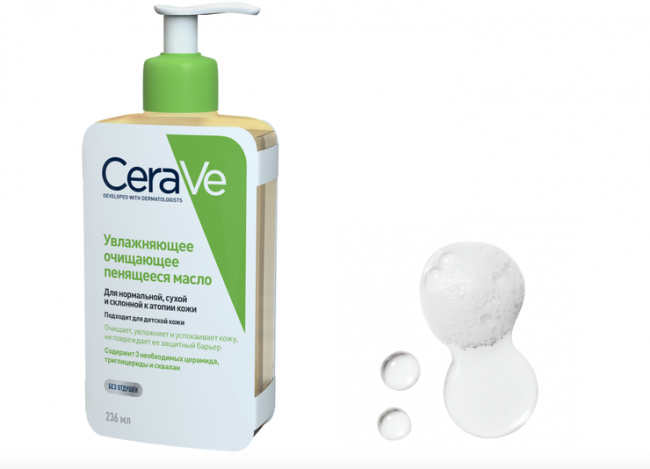Чтобы остановить потерю влаги нашей кожей, нужно поменять в том числе средства для очищения. Многие из них сильно действительно сильно сушат кожу: поверхностно-активные вещества, входящие в состав таких очищающих средств, удаляют с поверхности кожи, кроме загрязнений, также и себум, что может приводить к чувству стянутости, сухости, раздражению и дискомфорту, особенно у людей с кожей, склонной к сухости. Марка CeraVe выпустила инновационное очищающее средство — Увлажняющее очищающее пенящееся масло для нормальной, сухой и склонной к атопии кожи.