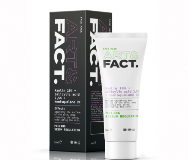 Угольная маска на основе глины для лица с салициловой (BHA-) кислотой и скваланом от ART&FACT