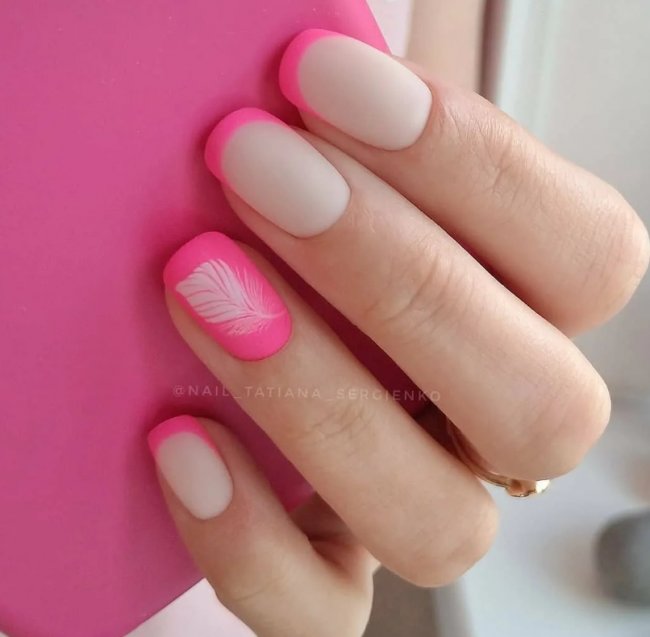 Этот дизайн не входит в новинки 2023 года, но он все так же остается в моде. Осенью важно правильно подобрать оттенки для такого френча. Они должны гармонично сочетаться между собой. Лучшие варианты: