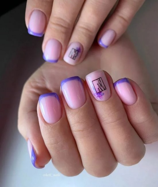 Такой вариант френча смотрится очень аккуратно и нежно. Ему отдают предпочтение любительницы минимализма. Тонкие линии мастера обычно наносят от руки кисточкой, но можно использовать скотч-ленты. Дизайн подойдет дамам любого возраста. Его все чаще выбирают на осень студентки, школьницы и офисные работницы.
