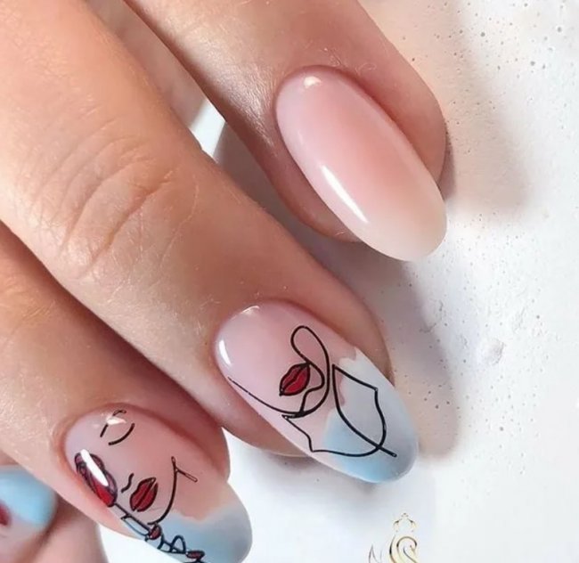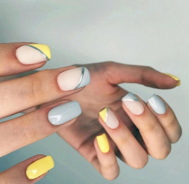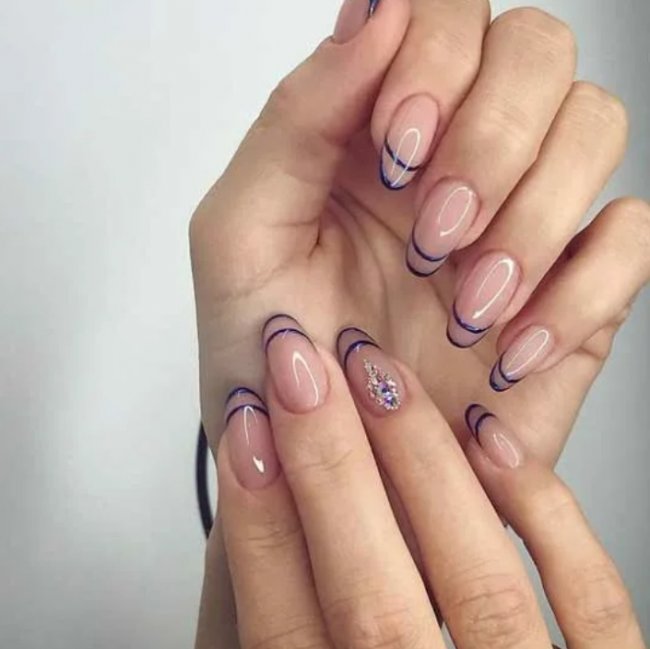Осенью 2023 года такой вариант дизайна займет лидирующие позиции в списке модных трендов. На ноготках рисуют полоску, которая чем-то напоминает морскую волну. Ее можно расположить как у основания ногтя, так и на кончике, а в качестве декора использовать фольгу, камни, стразы, скотч-ленты или добавить рисунки.