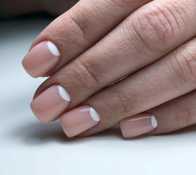 Необычная новинка 2023 года. Дизайн напоминает незаконченный классический френч. Он подойдет к любой одежде, обуви и прическе. Очень круто смотрится в тандеме с абстракцией и геометрией. Нейл-мастера рекомендуют рисовать тонкие линии. Так ноготки будут смотреться изящнее.