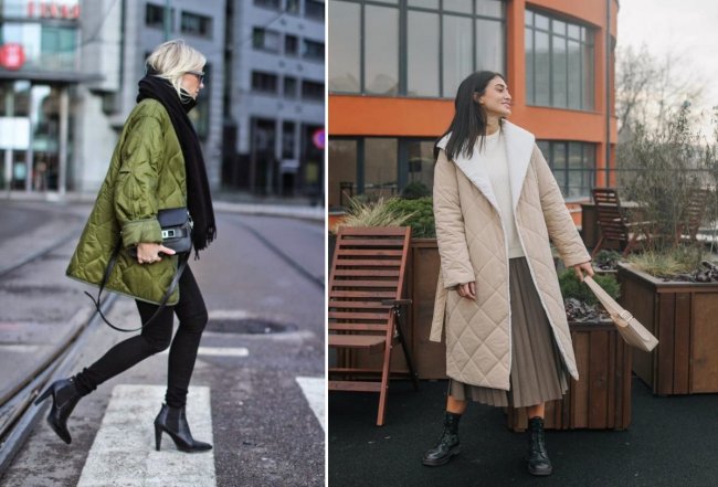 Тонкие стеганые пуховики удлиненного фасона практически не ощущаются по весу, защищают от дождя, ветра и небольшой прохлады. В них не будет жарко, даже если температура за окном существенно поднялась выше нуля. Куртка неплохо сочетается с брюками и юбками.
