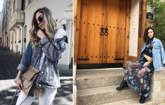 Универсальность курток из денима позволяет создавать множество стильных образов. Материал прекрасно сочетается с платьями, футболками, топами, рубашками, зауженными брюками, юбками и шортами. Завершить образ помогут классические туфли или кроссовки, рюкзак и сумка-клатч.