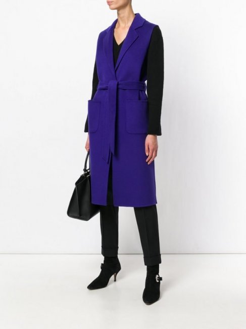 - В ранний осенний сезон допустимо носить пальто без рукавов. За счёт отсутствия данных деталей образ получается особенно утончённым и женственным. Под низ поддевают свитера толстой вязки с высоким воротом. Особой популярностью пользуется приталенные модели, дополнительно подчеркивающие достоинства фигуры.