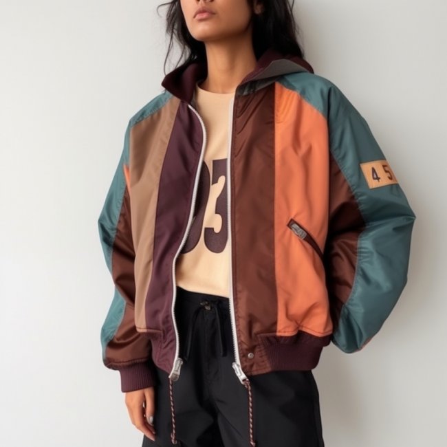 Стиль спорт-шик станет компромиссом между практичностью и гламуром. Куртки лаконичного покроя выигрывают за счёт насыщенных расцветок, дополнения разноцветными вставками, логотипами, буквенными принтами.