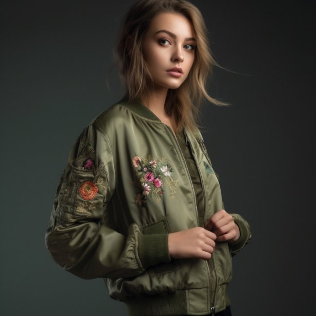 К популярным тенденциям женской верхней одежды можно отнести стиль милитари. Куртка изготавливается из плотной ткани, выполненной в бежевой, оливковой расцветке, оттенке хаки. Женственные нотки в образ привнесёт дополнение золотистыми пуговицами и вышивкой, яркими аппликациями.