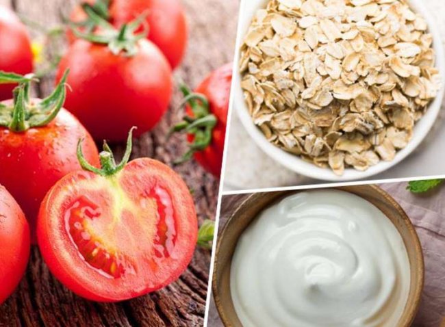 Смешайте спелый помидор с овсяными хлопьями (подойдет каша, которая осталась с завтрака, если она без сахара и масла), затем добавьте ложку йогурта, чтобы получилась гладкая паста. Прежде чем наносить пасту, как следует очистите лицо, затем нанесите ее на лицо и шею и оставьте на 10 минут. Маска поможет осветлить лицо, успокоить солнечные ожоги и бережно отшелушить кожу.