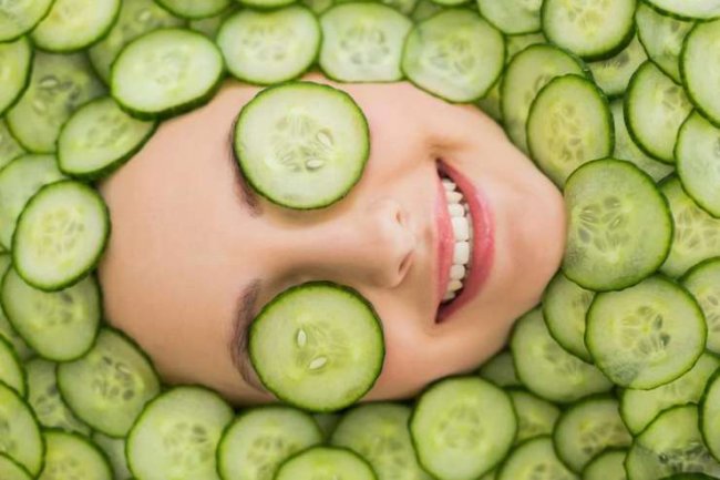 В огурцах много аскорбиновой и кофейной кислот, которые предотвращают отеки и снимают воспаление. Кроме того, содержание кремния способствует общему оздоровлению кожи, а большое количество воды в нем является естественным увлажнителем.