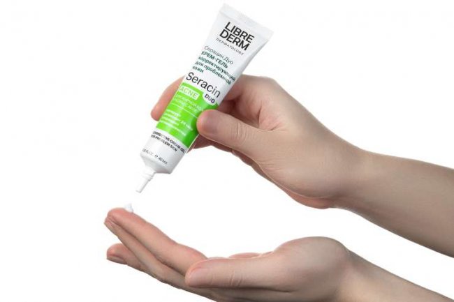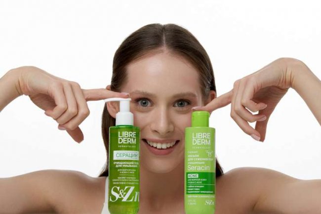 Например, очищающий гель для умывания Seracin. Он мягко удаляет загрязнения и макияж, подготавливает кожу к нанесению тоника и крема. Важно, что гель не сушит и не стягивает лицо, а растительные экстракты и аллантоин в сочетании с цинком и серой оказывают успокаивающее, антисептическое, себорегулирующее и матирующее действие.